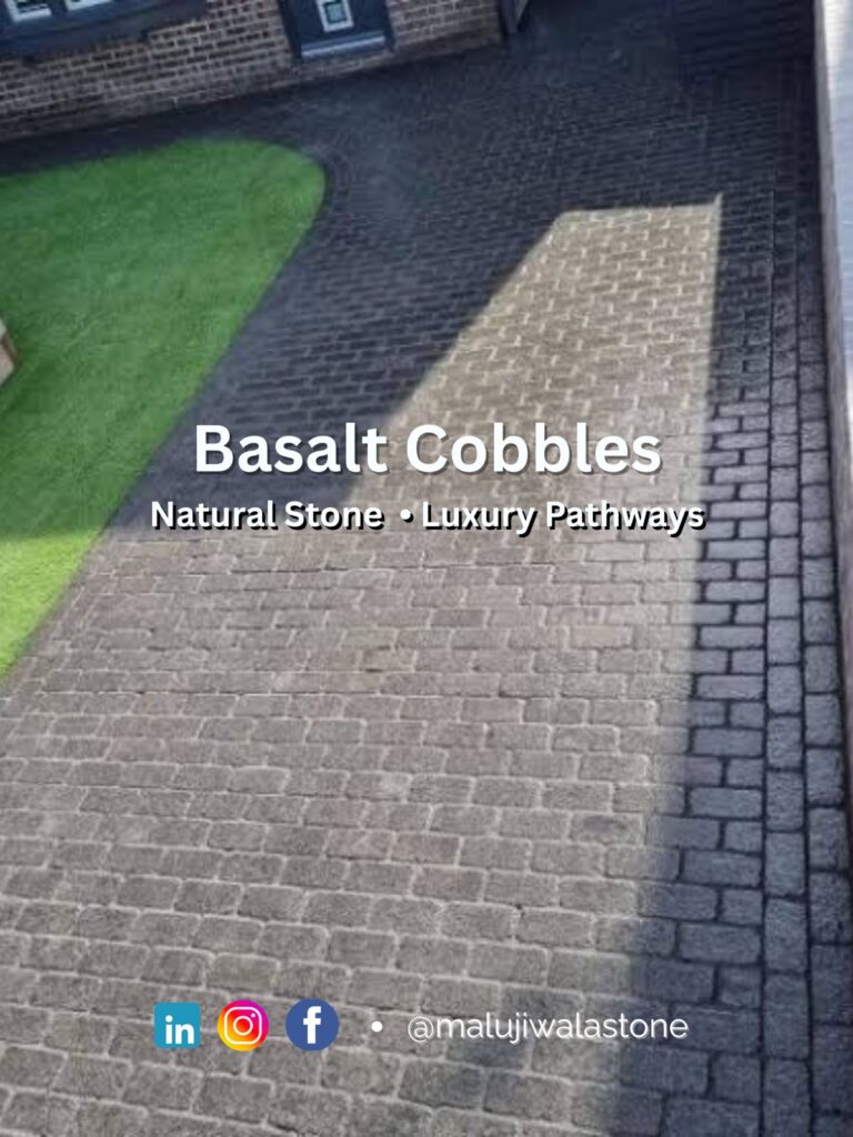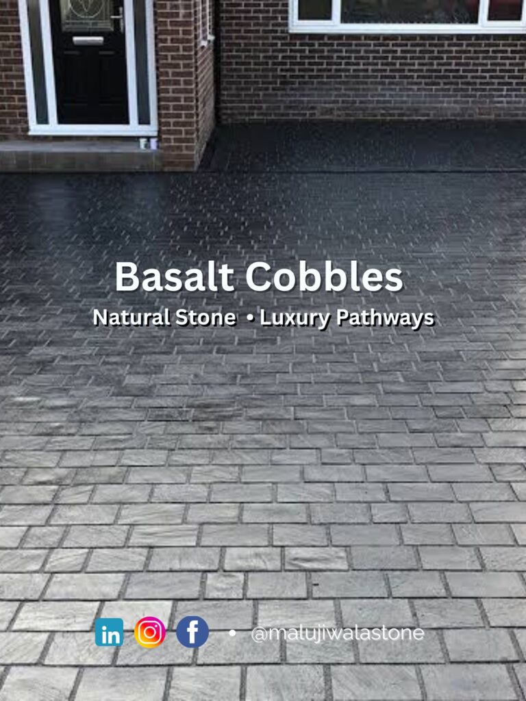 Black basalt Cobbles stone is a natural black stone that has been formed from the cooled lava of volcanoes. It is a popular choice for construction projects due to its durability, unique texture, and rich black color. Basalt cobbles is often referred to as lava cobble stone, and it is widely used in architecture, landscaping, interior design as well as outdoors. The Malujiwala Stone Company is a leading supplier of black basalt slabs, Black Basalt Cobbles in India. They have been in the business for over 30 years and have earned a reputation for providing high-quality natural stone products. Their basalt stones are sourced from the Kota District in Rajasthan, India, where they are quarried and processed using state-of-the-art technologies.